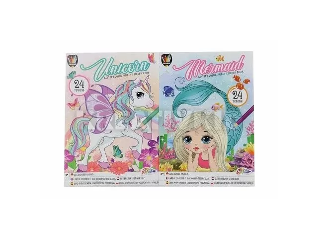 Grafix - A4 csillámos színező martica album,Sellő  - 32 minta + 2 matricás ív