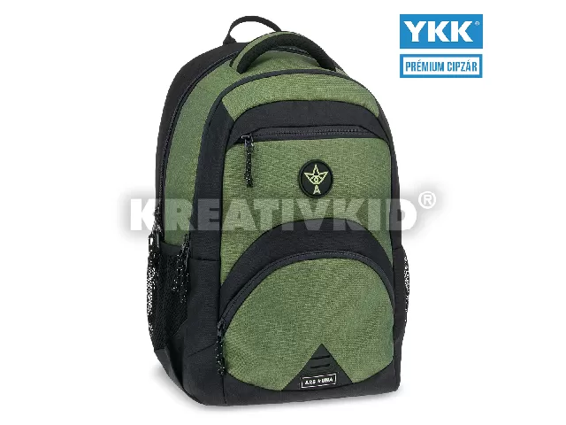 Ergonomikus hátizsák, amelyet 3. osztálytól ajánlunk. Vízlepergető anyagból készült, szellőztető hátkiképzéssel (Air Flow Max System), állítható mellkaspánttal és párnázott, állítható vállpántokkal, tetején fogantyúval, YKK cipzárral. A hátizsák hátsó része, belső részén alul az oldalsó rész és az alj is párnázott, ezáltal a táska formatartó, de nem merev. 1 nagy rekesszel, párnázott laptop tartóval, kétoldalt hálós zsebbel a kulacs részére. Középső rekeszében cipzáras belső zseb + 2 zseb, valamint 3 db cipzáras első zseb található. Mérete: 450x330x240 mm. Űrtartalma: 27 l. Terhelhetőség: 10 kg. 3 év garancia.