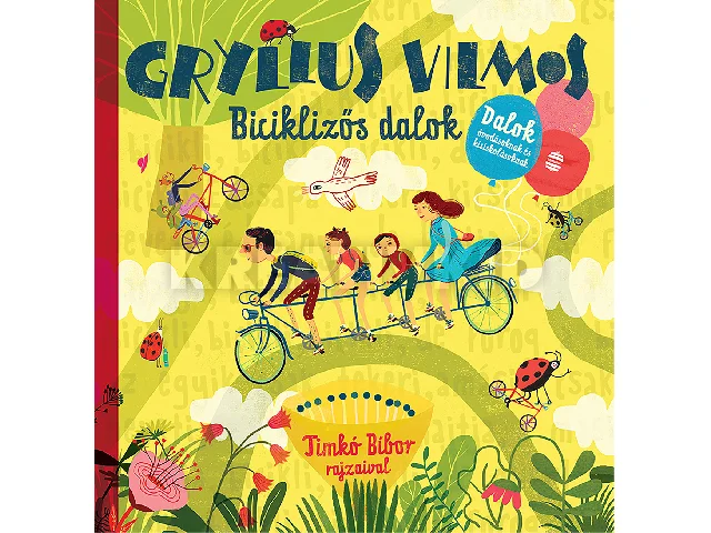 Egy egész napos biciklizős, családi kirándulás élményeit idézik fel a dalok. A pitypangtól sárgálló mezőt, a pockokra vadászó vércsét, a tiszta vizű forrást és a pöfögő traktort. Azt, hogy kik és mik laknak egy erdei pocsolyában vagy egy kidőlt fában. Hogy milyen édes volt a szeder, és mennyire csípett a csalán. Hogy a vidáman tekerő család útját állta egy sorompó, eláztatta őket egy nyári zápor, de énekelt nekik a sárgarigó és a fülemüle. Gryllus Vilmos személyes hangvételű dalai ezúttal is Timkó Bíbor üde rajzain elevenednek meg.A könyv zenei anyaga meghallgatható a kötet elején található QR-kódok segítségével.