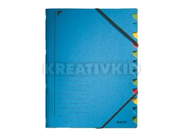 Gumis mappa, karton, A4, regiszteres, 12 részes, LEITZ, kék