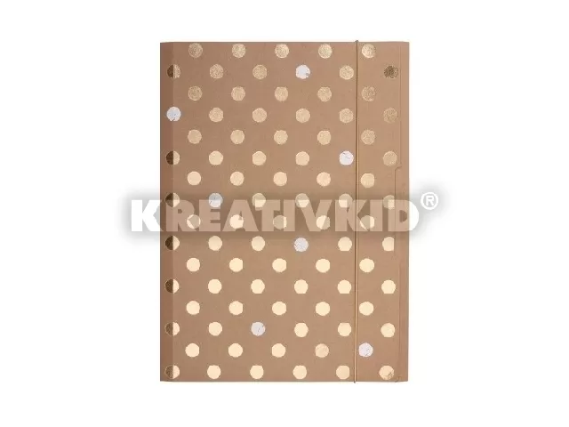 Gumis mappa A4 Pure Glam, fehér-arany nyomásmintával felületnemesített keménykarton alapanyagból, pólyás.