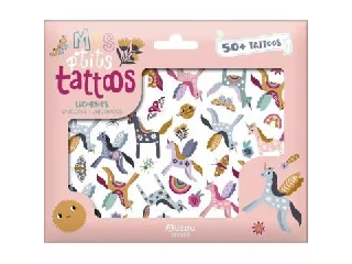- 400 db lemosható tetoválás - Kinyitható kis füzetke - 5 ív, témák: állatok, kozmosz, mágia, növények - Ajánlott életkor: 3+ - Csomagolás mérete: 0.4...