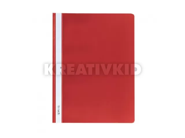 A4-es méretű iratok lefűzésére alkalmas PP gyorsfűző, feliratozható gerinccel, átlátszó fedlappal, színes hátlappal, piros színben.