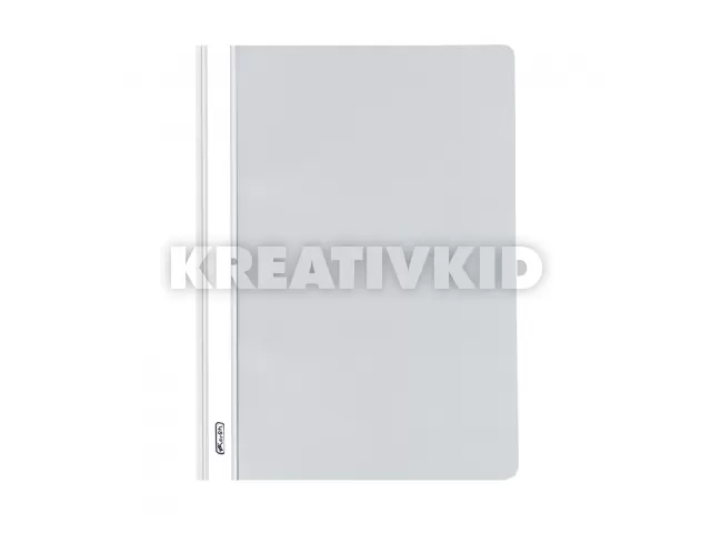 A4-es méretű iratok lefűzésére alkalmas PP gyorsfűző, feliratozható gerinccel, átlátszó fedlappal, színes hátlappal, szürke színben.