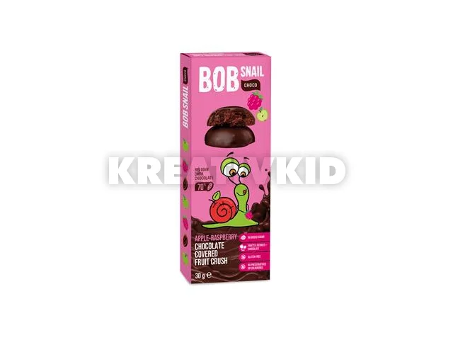 Gyümölcs snack, 30 g, BOB SNAIL, alma-málna étcsokoládéban
