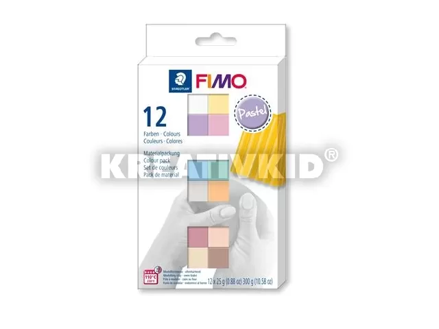 Gyurma, készlet, 12x25 g, égethető, FIMO "Soft Pastel" 12 különböző szín