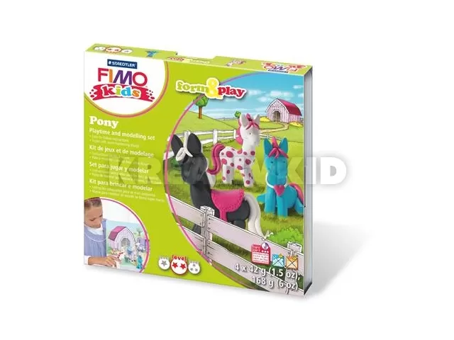 Gyurma készlet, 4x42 g, égethető, FIMO "Kids Form & Play", pónik