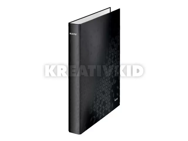 Gyűrűs könyv, 2 gyűrű, D alakú, 40 mm, A4 Maxi, karton, LEITZ "Wow", fekete