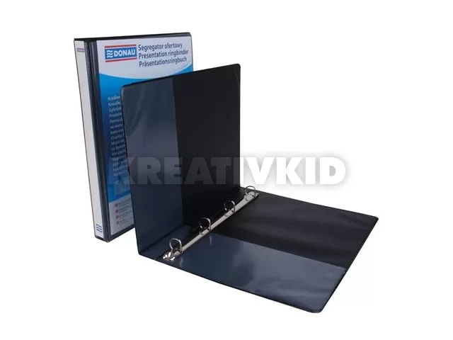 Gyűrűs könyv, panorámás, 4 gyűrű, D alakú, 44 mm, A4, PP, DONAU, fekete