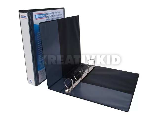 Gyűrűs könyv, panorámás, 4 gyűrű, D alakú, 63 mm, A4, PP, DONAU, fekete