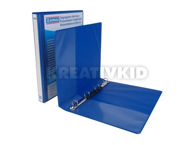 Gyűrűs könyv, panorámás, 4 gyűrű, D alakú, 44 mm, A4, PP, DONAU, kék