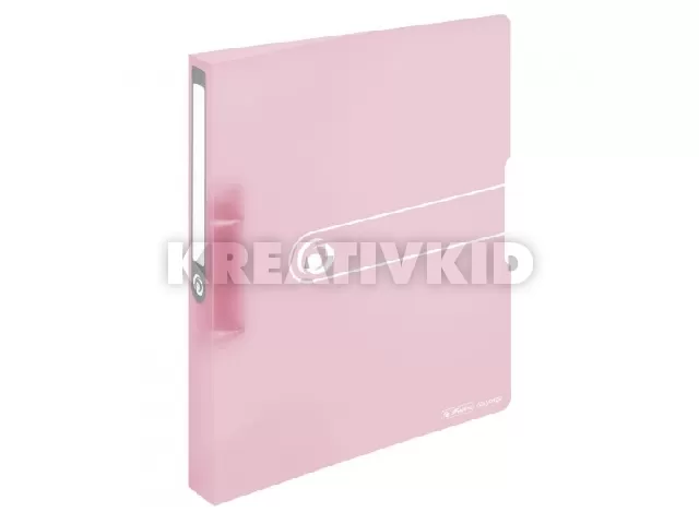 PP gyűrűskönyv Pastels, A4-es méretű iratok tárolására, 2 gyűrűs, 25 mm-es lefűzési mélységgel, 38 mm-es gerinccel, ragasztott címkével, áttetsző rózsaszín.