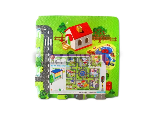 A termék 9 db puzzle elemet tartalmaz, melyeket összerakva egy 92x92 cm-es játszó felületet képez. A termék felületén egy város részlete jelenik meg. Megtalálható ebben a városban az iskola, bolt benzinkút, a kertvárosi rész, a gyorsétterem, kórház helikopter leszállóval, rendőrség, és az ipari terület is. Természetesen nem hiányozhat a park, a város közepén hatalmas nagy tóval. Az épületeket pedig utak kötik össze így az autók tologatása már természetes lesz. Nagy város hatalmas lehetőséggel és kalandokkal.