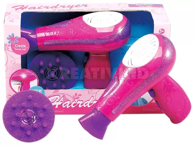 Szárítsd meg a nedves hajad a hercegnői hajszárítóval! A rózsaszín hajszárító készletben egy csillámokkal díszített, világító szárítót találsz, ami igazi levegőt fúj ki! A hajszárítóra egy fésűs fejet is fel tudsz erősíteni, így szárítás közben fésülködni is tudsz, formázhatod a tincseidet! A hajszárító 2 darab AA ceruzaelemmel működik, a csomagolás az elemeket nem tartalmazza. Rózsaszín hajszárító méretei: 19 x 8 x 14 cm.