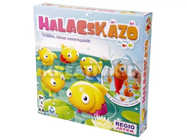 Kövesd és jegyezd meg, melyik halat kell kifognod! A Halacskázó társasjáték egy memóriajáték, ahol halakat kell kifognod a tóból. A halaknak csak a feje látszik ki a tóból, és amikor a horgászbottal kiemeled őket, megtudod, hogy milyen színű a testük. Mindegyik színből kettőt találsz, a teleszkópos farkincák színének a párját kell megtalálnod. A halak játék közben mozognak, kövesd, hogy melyik hal merre jár, és jegyezd meg, melyiket kell kifognod!