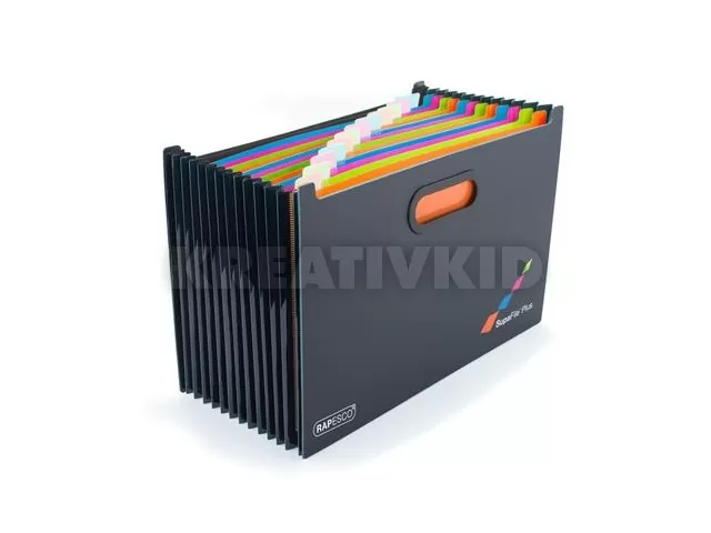 Harmonika irattartó, A4+, PP, 13 rekeszes, RAPESCO "SupaFile Plus", fekete