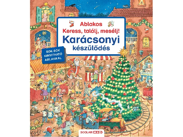 Ma´r mindenki nagyon va´rja a kara´csonyt! Otthon, az o´voda´ban, a bara´tokna´l mindenhol folyik a ke´szu¨lo?de´s az e´v legszebb u¨nnepe´re.A Keress, találj, mesélj! sorozat készítői minden oldalpár szélén kiemeltek néhány tárgyat, élőlényt vagy személyt, melyeket a gyerekek megkereshetnek az adott oldalpár nagy méretű képén. A?meglepetéseket rejtő ablakok további keresésre és mesélésre ösztönzik a gyerekeket. A böngészés öröme garantált!