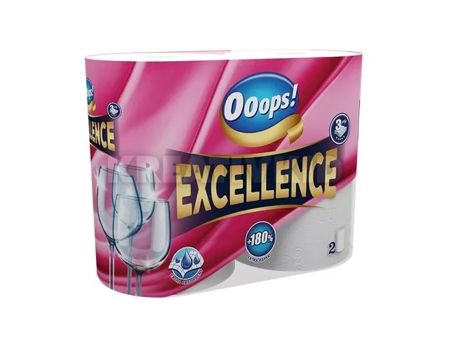 Háztartási papírtörlő, 3 rétegű, 2 tekercses, OOOPS "Excellence