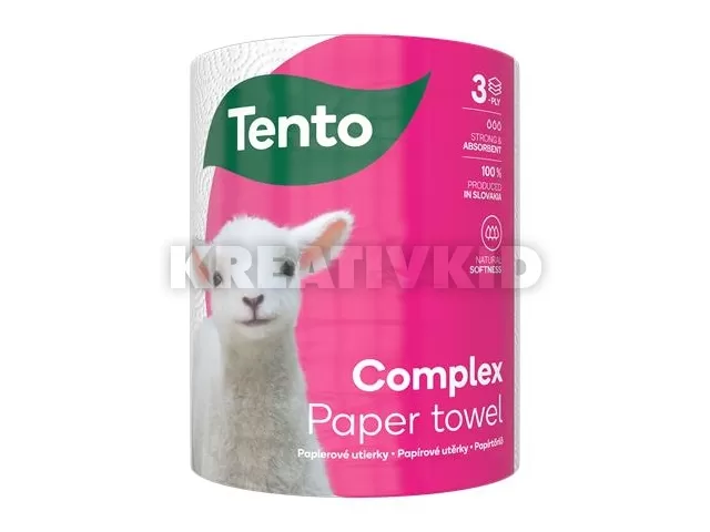 Háztartási papírtörlő, tekercses, 3 rétegű, 220 lap, TENTO "Complex", fehér
