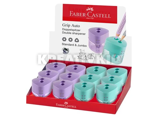 Hegyező display, kétlyukú, FABER-CASTELL, "Grip Auto", vegyes pasztell színek