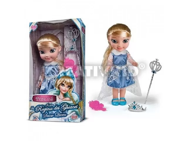 Ezzel a 25 cm-es Hókirálynő babával a kislányok eljátszhatják a jégszívű uralkodónő történetét, de akár saját történeteket is kitalálhatnak, amely fejleszti kommunikációs készségüket, képzeletüket és fantáziájukat. A játékbaba csinos, csipkehatású, hópehely mintával díszített ruhájának gallérja szőrmés, hiszen a nagy hidegben a királynő nem szeretne megfázni. Emellett a ruhája és a cipellői is levethetők, így a kislányok akár otthoni babaruha-kollekciójuk darabjait is ráadhatják. A baba hosszú, szőke haja fésülhető, emellett egy szilikon hajgumit is találnak benne a kislányok, így akár stílusos, királynőhöz illő frizurát is készíthetnek neki. 3 éves kortól ajánlott.