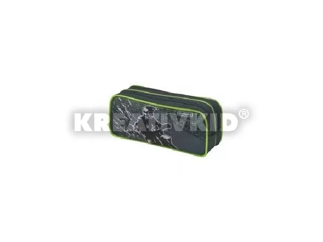 Két rekeszes üres dupla tolltartó 20,5x7x9 cm-es méretben. Anyaga: poliészter, vegyes mintákkal.