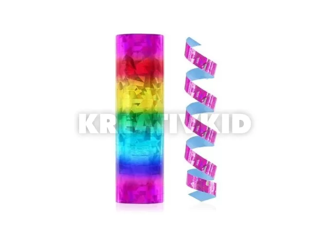 Holografikus szerpentin. A tekercs 18 darab 4 méter hosszú szalagot tartalmaz.