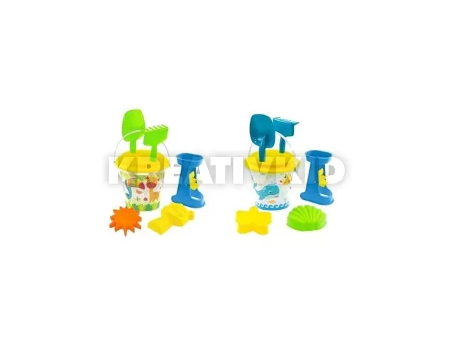 Homokozókészlet mini vízimalommal, 7 részes - Sárga szitával