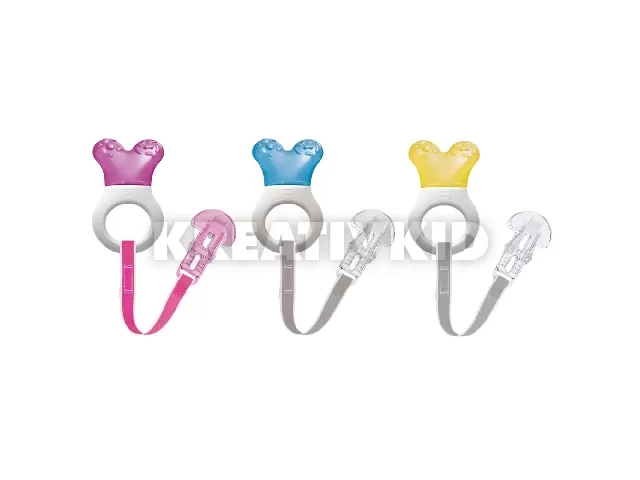 A strukturált felület és a hûthetõ rész megkönnyíti a fogzást, és a rágókát izgalmassá teszi a baba számára.
