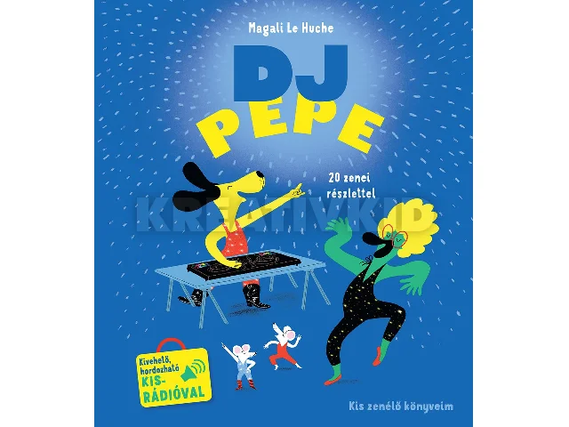Születésnapja alkalmából Pepe nagy bulit szervez. Ő lesz a DJ, és lemezlovasként nagyszerű hangulatot varázsol a táncparkettre az electro, a jazz, a reggae, a rocknroll, a tangó, a diszkó dallamaival no és egy kis lassúzás sem maradhat ki.Hallgasd meg a zenéket a könyvben vagy vedd ki a zenélő dobozt, és használd kisrádióként!