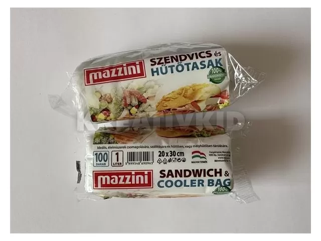Hűtő- és uzsonnástasak, köthető füles, 1 l, MAZZINI, átlátszó