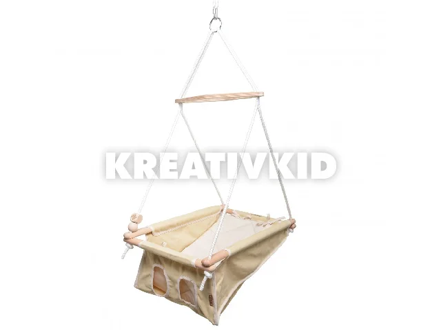 Egy speciális beltéri babahinta, amelyben fekvő helyzetben pihenni, ülő helyzetben pedig játszani tud a baba. Rugóval kiegészítve nem csak oldalirányban, hanem felfelé és lefelé is ringatható benne gyermeked. A nagyobb babák ülve, a lyukakon a lábukat kidugva, a talajt érintve tudnak rugózva hintázni, ezáltal erősítve izomzatukat. Kivehető belső párnájával a nagyobb gyerekek lábának szánt lyukak lezárhatóak a kisebbek biztonsága érdekében. Fekvés közben megnyugtat, ellazít, rugózás közben pedig szórakoztatva fejleszt. A lakás és a babaszoba üde színfoltja lehet, követi a legújabb trendeket, maximálisan megfelel a kor elvárásainak.