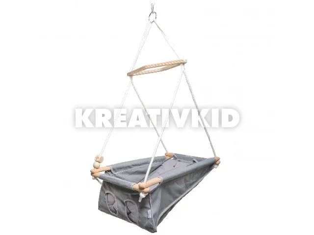 Egy speciális beltéri babahinta, amelyben fekvő helyzetben pihenni, ülő helyzetben pedig játszani tud a baba. Rugóval kiegészítve nem csak oldalirányban, hanem felfelé és lefelé is ringatható benne gyermeked. A nagyobb babák ülve, a lyukakon a lábukat kidugva, a talajt érintve tudnak rugózva hintázni, ezáltal erősítve izomzatukat. Kivehető belső párnájával a nagyobb gyerekek lábának szánt lyukak lezárhatóak a kisebbek biztonsága érdekében. Fekvés közben megnyugtat, ellazít, rugózás közben pedig szórakoztatva fejleszt. A lakás és a babaszoba üde színfoltja lehet, követi a legújabb trendeket, maximálisan megfelel a kor elvárásainak.