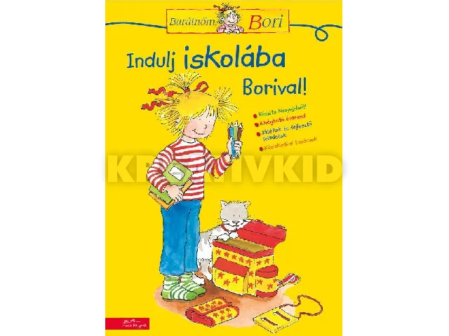 Nemsokára véget érnek az óvodás évek, és Borival együtt te is iskolába fogsz járni, ahol sok új és izgalmas élmény vár rád.Örülsz neki? Várod már? Talán izgulsz is egy kicsit?Bori körbevezet az iskolájában, megmutatja a tantermeket és az iskolaudvart, elmondja, mit kell vinned magaddal, hogyan kell ügyesen és balesetmentesen közlekedned az utcán. És persze arról sem fog elfeledkezni, hogy elmesélje, milyen finomságokat szokott tízóraira csomagolni. Végül készíthettek együtt órarendet, könyvjelzőket és sok minden mást is a könyv útmutatása alapján.