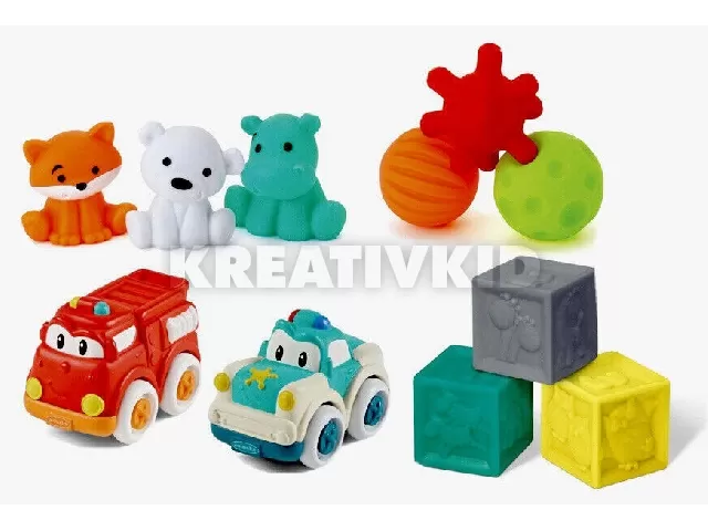 - Élénk színek és különböző textúrák jellemzik a puha kis játékokat.