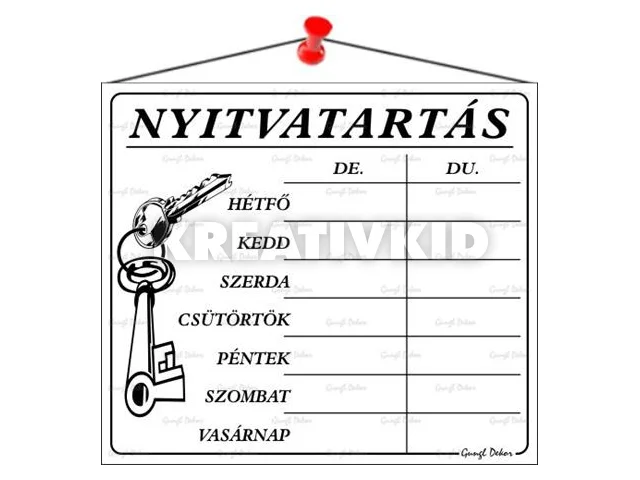 Információs tábla, 20x17,5 cm, "Nyitvatartás", fehér