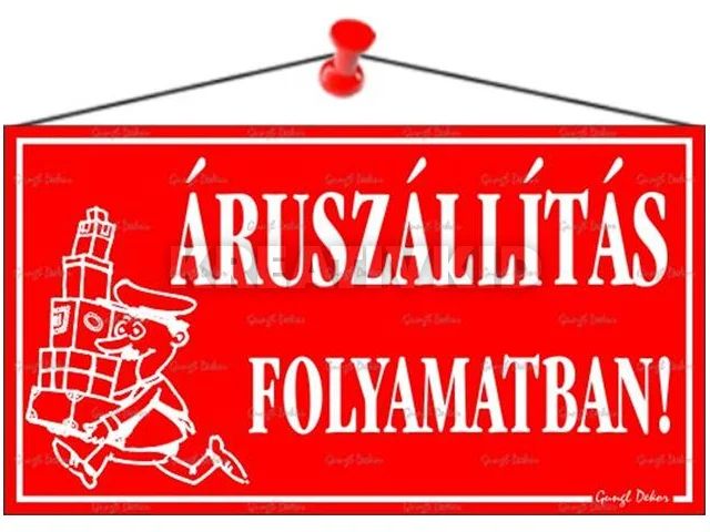 Információs tábla, 22,5x12,5 cm, "Áruszállítás folyamatban!", piros