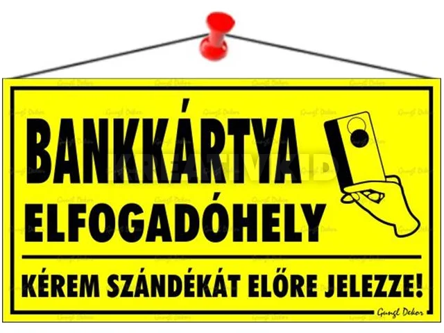 Információs tábla, 22,5x12,5 cm, "Bankkártya elfogadóhely"