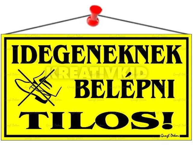 Információs tábla, 22,5x12,5 cm, "Idegeneknek belépni tilos!", sárga