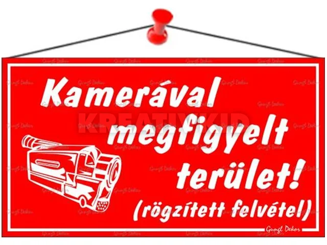 Információs tábla, 22,5x12,5 cm, "Kamerával megfigyelt terület", piros