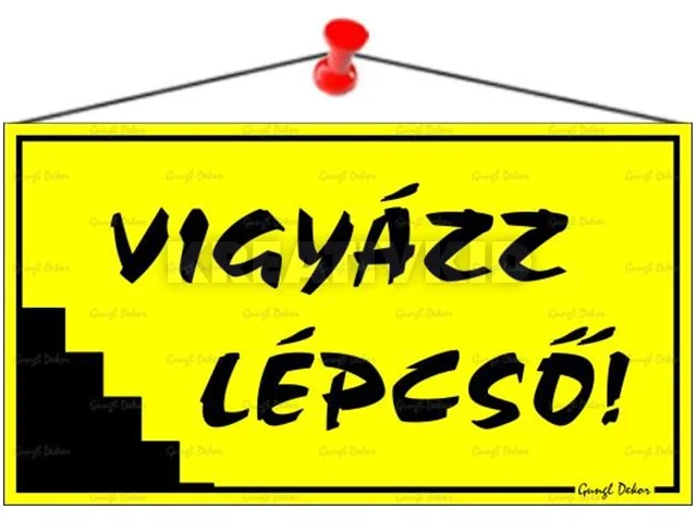 Információs tábla, 22,5x12,5 cm, "Vigyázz lépcső!", sárga
