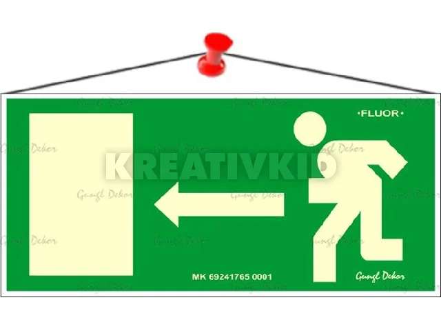 Információs tábla, 25x11,5 cm, fluoreszkáló, utánvilágítós, "Menekülési irány balra"