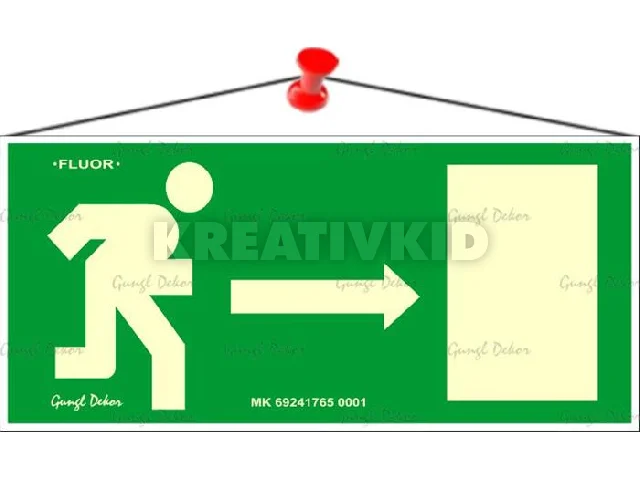 Információs tábla, 25x11,5 cm, fluoreszkáló, utánvilágítós, "Menekülési irány jobbra"