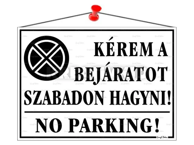 Információs tábla, 35x25 cm, "Kérem a bejáratot szabadon hagyni!", fehér