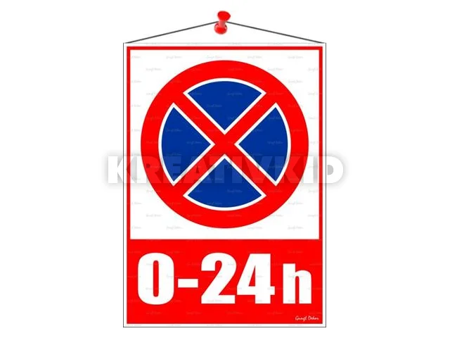 Információs tábla, 35x25 cm, 0-24h megállni tilos piktogram