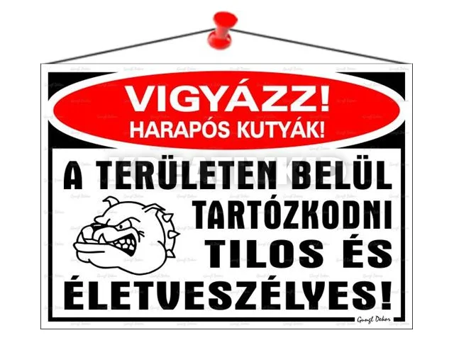Információs tábla, 35x25 cm, "Vigyázz harapós kutyák!"