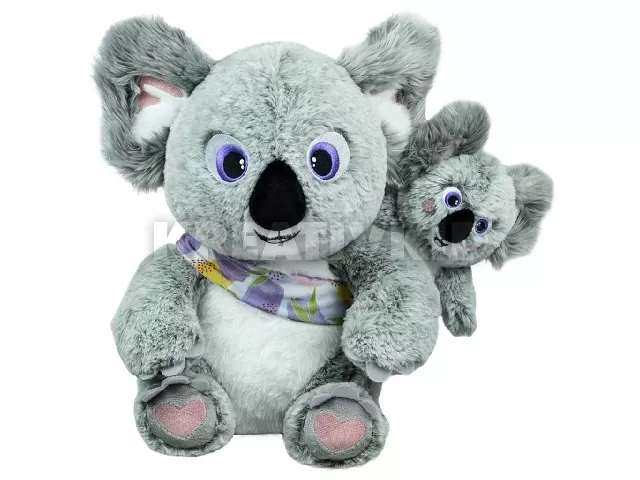 Interaktív plüss koala - Mokky és Lulu gyerekeknek. Tartalma: 1 db koala mama figura, 1 db koala kölyök figura, 1 db ággyá alakítható doboz, 1 db takaró, 1 db párna. A plüssfigurák hangot hallatnak.