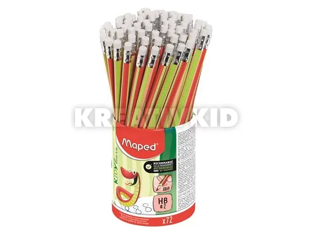 Írástanuló grafitceruza radírral, ceruzatartó, HB, háromszögletű, MAPED "Kidy Learn", 72 darab