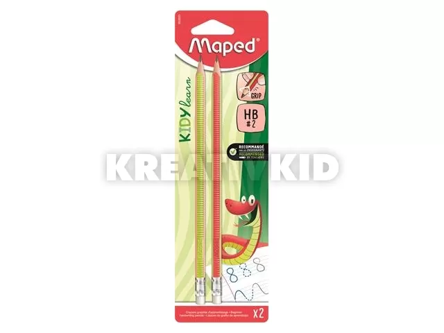 Írástanuló grafitceruza radírral, HB, háromszögletű, MAPED "Kidy Learn", 2 darab