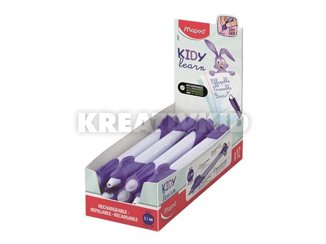Írástanuló rollertoll, 0,7 mm, radírozható, MAPED "KIDY Learn MAGIC", nyuszi, lila, 12 db